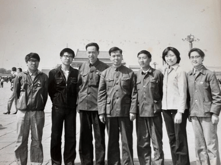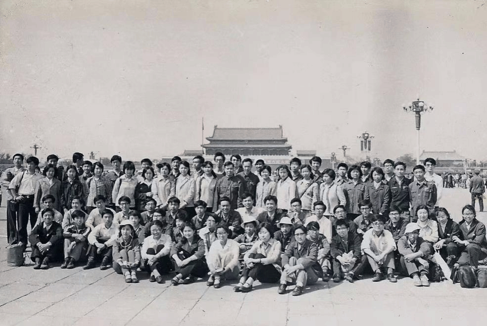 北洋艺术团首任团长兼指挥、精仪系82级生物仪器校友商澎收藏的照片。北洋艺术团到清华大学访问演出后,次日在广场合影留念。后二排中为杨渝钦副校长