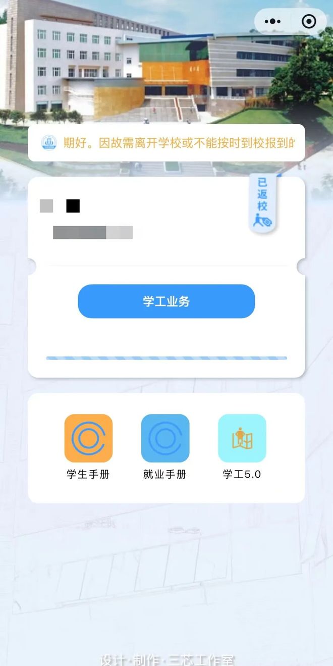 它是你离校请假、回校签到的必备小程序,在这里,班主任可以实时了解到你的在校情况。